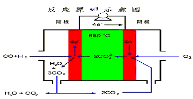 熔融碳酸盐燃料电池是由多孔陶瓷阴极、多孔陶瓷电解质隔膜、多孔金属阳极、金属极板构成的燃料电池。其电解质是熔融态碳酸盐。