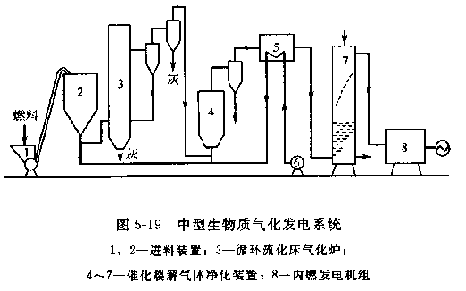 系统出力一般在500一2000kW,其组成与小型装置类似,由于气化容量较大,气化炉采用流化床或循环流化床形式,冷却过滤系统比小型系统完善,除焦采用催化裂解的方法,使90%以上的焦油裂解成永久性气体,水洗冷却塔中排水的焦油含量可望达到排放标准,发电设备为内燃机发电机组。 这种设备用于农村、农场、林场的照明用电或小工业用电,也适合粮食加工厂、木材加工厂等农村废弃物较多区域进行自供发电。