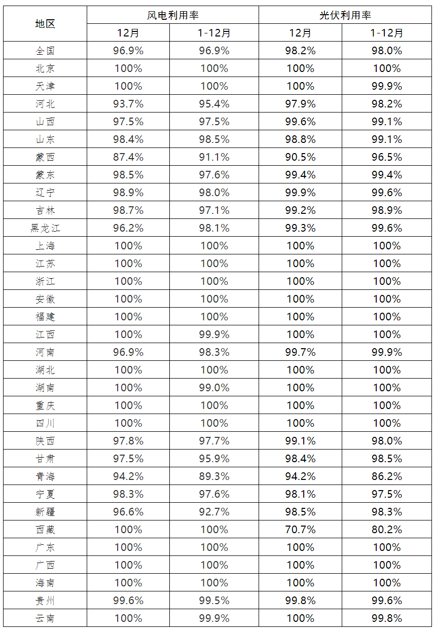 今日,全国新能源消纳监测预警中心发布2021年12月全国新能源并网消纳情况。 根据《国家能源局关于2021年风电、光伏发电开发建设有关事项的通知》(国能发新能〔2021〕25号),为引导新能源理性投资、有序建设,现将2021年12月各省级区域新能源并网消纳情况公布如下。