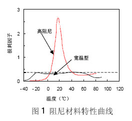 摘 要: 简要分析了风力发电机组的噪声源,重点介绍了阻尼减振降噪控制和噪声传播降噪控制的原理和方法,提出风力发电机组的噪声控制措施和方法。 关键词:风力发电机 阻尼减振 噪声控制 0 引言 能源是现代社会和经济发展的基础。在常规能源告急和全球生态环境恶化的双重压力下,风能作为最有开发利用前景和技术最成熟的一种新能源和可再生能源之一,已成了全球能源工业关注的热点。自二十世纪七十年代以来,风能开发和利用在欧美发达国家发展非常迅速,风力发电的技术也日趋成熟。中国国家计委于1996 年3 月制定了“乘风计划”,以风力发电机的国产化来带动风电场建设的产业化。该计划旨在采取技贸结合的形式,引进国外先进技术,通过消化吸收,达到自主开发,自行设计和制造大型风力发电机的能力[1]。 风能开发能减轻空气污染和水污染,但如果处理不当,则会增加噪声污染。近几年,随着风力发电机国产化程度的不断扩大,而我国制造业与欧美发达国家还有一定的差距,因此国产化风力发电机振动噪声问题逐渐显现出来。风力发电场附近居民对风力发电机组产生大噪声烦扰的投诉、申告也越来越多,甚至威胁到风力发电机的正常国产产业化,因此,风力发电机的减振降噪控制是非常重要和必要的。本文将重点讨论阻尼减振降噪技术和噪声传播降噪技术在风力发电机组噪声控制中的应用。 1 噪声源分析 风力发电机组工作过程中在风及运动部件的激励下,叶片及机组部件产生了较大的噪声,其噪声源主要有: (1)机械噪声及结构噪声 齿轮噪声。啮合的齿轮对或齿轮组,由于互撞和摩擦激起齿轮体的振动,而通过固体结构辐射齿轮噪声。 ② 轴承噪声。由轴承内相对运动元件之间的摩擦和振动及转动部件的不平衡或相对运动元件之间的撞击引起振动辐射产生噪声。 ③ 周期作用力激发的噪声。由转动轴等旋转机械部件产生周期作用力激发的噪声。 ④ 电机噪声。不平衡的电磁力使电机产生电磁振动,并通过固体结构辐射电磁噪声。 机械噪声和结构噪声是风力发电机组的主要噪声源,而且对人的烦扰度最大。这部分噪声是能够控制的,其主要途径是避免或减少撞击力、周期力和摩擦力,如提高加工工艺和安装精度,使齿轮和轴承保持良好的润滑条件等。为减小机械部件的振动,可在接近力源的地方切断振动传递的途径,如以弹性连接代替刚性连接;或采取高阻尼材料吸收机械部件的振动能,以降低振动噪声。 空气动力噪声由叶片与空气之间作用产生,它的大小与风速有关,随风速增大而增强。处理空气动力噪声的困难在于其声源处在传播媒质中,因而不容易分离出声源区。 (3)通风设备噪声 散热器、通风机等辅助设备产生的噪声。 2 噪声控制 噪声控制可以从噪声源、噪声传播途径和噪声接受者三方面入手[2]。噪声控制技术主要以噪声的声学控制方法为主,具体的技术途径一般包括隔声处理、吸声处理、振动的隔离、阻尼减振等。隔声处理和吸声处理属于噪声传播降噪控制;振动的隔离和阻尼减振属于阻尼减振降噪控制。这些噪声控制方法的机理在于,通过噪声声波与声学材料或声学结构、振动波与阻尼材料或阻尼结构的相互作用消耗能量,从而达到降低噪声的目的。 2.1.1 阻尼材料及其特性 材料阻尼是指材料内部在经受振动变形过程中损耗振动能量的能力[3]。阻尼材料也称粘弹阻尼材料,或粘弹性高阻尼材料。它是一种兼有某些粘性液体和弹性固体特性的材料。粘性液体有耗散能量的能力,而不能储存能量;相反,弹性材料有储存能量的能力,而不能耗散能量。粘弹性材料介于两者之间,当它产生动态应力和应变时,有一部分能量被转化为热能而耗散掉,而另一部分能量以位能的形式储存起来。能量被转化和耗散的现象表现为阻尼特性。利用它可抑制共振频率下的振动峰值,减少振动沿结构的传递,降低结构噪声。 各种阻尼材料都受环境温度和工作频率的影响,温度不同,工作频率不同,阻尼特性也不同。作为良好的阻尼材料,应在较宽温度范围和较宽频率范围具有较高的损耗因子,如图1 所示。