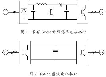 摘要 从控制原理、电路拓扑、技术特点、实验分析等方面简明扼要地阐述了直驱式风力发电并网变流器。此变流器网侧功率因数高,电流谐波失真系数(THD)小,动态响应快,呈电流源特性,易于多单元并联。 关键字 风力发电;直驱式变流器;电流谐波失真系数(THD) 0 引言 风力发电是目前最具有形成规模化和最具备商业化的可再生能源技术。而实际上风力发电在很大程度上取决于变速恒频发电系统的发展,变速恒频发电系统已经成为MW级以上风力发电机组的主流技术。所谓变速恒频,就是通过调速控制,使风力发电机组风轮转速能够跟随风速的变化,最大限度地提高风能的利用效率,有效降低载荷,同时风轮及其所驱动的电机转速变化时,保证输出的电能频率始终与电网频率一致。 变速恒频风力发电系统主要分为双馈式和直驱式两种类型。双馈式由于其变流器串联在双馈发电机的转子绕组中,其容量只有系统总功率的1/4~1/3,有效地降低了系统成本;与双馈式相比,直驱式采用低速永磁同步发电机结构,无齿轮箱(或半直驱式,采用一级齿轮箱),也无滑轮,机械故障少,损耗小,运行效率高,维护成本低,但是,由于直驱式采用系统全功率传输,初始成本相对较高。 目前国内许多高校、研究所和企业主要研究、跟踪,消化吸收双馈式并网变流器,而我们公司近年来利用多年研究开发大功率变频器主电路拓扑和回馈并网控制技术的优势,专注直驱式风力发电并网控制技术的开发,成功研制出该产品,并已安装调试于内蒙古包头市,现已成功运行数月,且无故障记录。 1 控制原理 MW级大功率直驱式并网变流器采用多单元并联结构,单个单元的主电路拓扑采用交-直-交电压型结构,如图1或图2所示,图1采用二极管不控整流和Boost升压稳压电路,图2采用PWM全控整流电路。