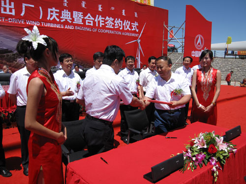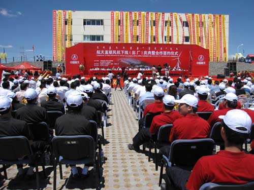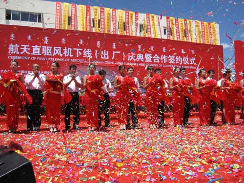 航天直驱风机下线庆典暨合作签约仪式在内蒙举行文章来源:中国新能源网 | 发布日期:2009-06-23 | 作者:未知 | 点击次数:
