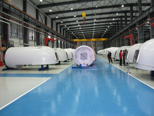 风机车间 直驱风力发电机相比于传统风机省略了故障率高的齿轮箱部件,具有发电效率高、易于安装维护、机组寿命长、体积小、全寿命成本低等优点,是世界风力发技术的发展方向。 中国航天万源国际(集团)有限公司提出了“发展航天风电制造业,打造国际知名品牌,成为国际风电行业具有核心竞争力的上市公司”的奋斗目标。公司依托航天雄厚的技术和人才优势,以“技术领先、质量可靠”为目标,承诺用“航天高品质、高标准、严要求”的工作作风,竭诚为用户提供质量可靠、性价比高的优质风机设备。航天人凭借自己的实力和能力决心将成为世界风电设备制造领域的强者。 航天人钟爱蓝天,航天人更崇尚和倡导绿色能源。为了中国的天空更蓝,为了人类居住的地球更美,航天人为此将不懈努力,贡献社会,造福人类。。。。。。 中国新能源网现场报道 刘汉国
