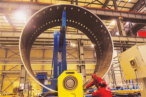 据了解,塔筒是风机正常运转的重要组成部分,支撑整个风机运转发电,是获得风能资源的主体设备。该项目于2009年5月启动建设,总投资达2.6亿元,每年可实现收入8.5亿元。 凯明大丰机械制设备制造有限公司车间负责人说,目前在生产方面,该项目的下料、卷板、焊接、组对、防腐和检测六大关键环节设备都已经到位并安装调试完成。在加工技术上,经过一个时期的设备调试与技术、工艺的反复结合测试,各项控制参数及指标都已经达到了生产要求,可以说,目前企业已经基本掌握了国内最为先进的塔筒制造工艺与技术。 据了解,目前企业正在生产的塔筒产品是凯明大丰机械制设备制造有限公司与国内风电领军企业华锐风电公司战略合作,为大庆和平牧场20万千瓦风电场3.0兆瓦风机生产的配套塔筒,该风电场是国内唯一单机设备容量达到3.0兆瓦的陆地风场。 销售部经理孟凡鹏介绍,东北三省及内蒙古地区是我国风力资源最为丰富的地区,为风电设备提供了最为良好的市场环境,企业的主要产品将重点辐射到黑吉辽三省及内蒙古等北方各省。 瑞日大丰集团公司副总经理张晶表示,2008年瑞日大丰正式进入新能源领域,开展了风电场建设、风力发电及设备制造等业务,该塔筒项目是企业加快实施产业转型升级发展战略的龙头支撑项目,以它的正式投产为标志,企业在新能源装备制造领域,初步具备了先进的生产、技术、产品和市场优势,市场竞争力在不断增强。
