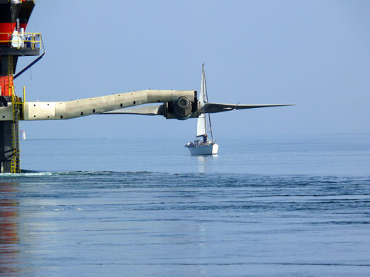 9图片为爱尔兰斯特兰福特湾(Strangford Lough)的潮汐发电涡轮机,它发的电已联入英国国家电网。这是由吉尔·史蒂文森(Gil Stevenson)拍摄的。