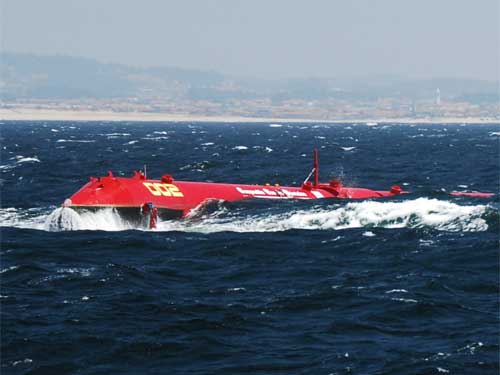 世界上第一个商业海浪发电厂——“海蛇”位于葡萄牙北部海岸,2008年刚刚投入运转。“海蛇”的发电机是一个150米长的钢铰接结构,通过弯曲移动带动水轮发电机发电,可产生750千瓦电量。