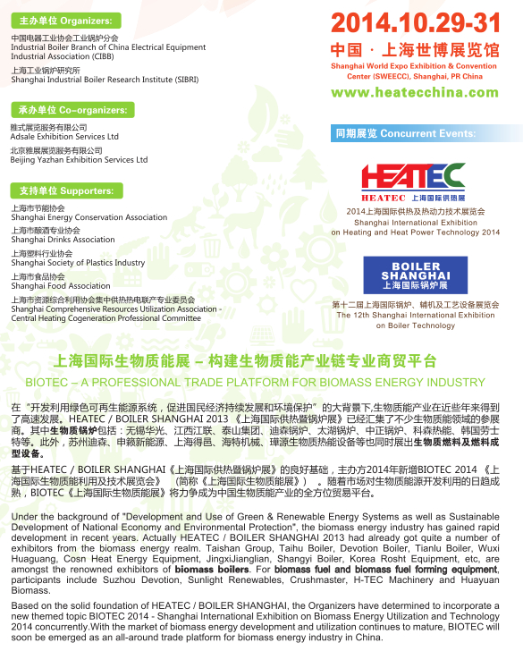 | 2014上海国际生物质能利用及技术展览会文章来源: | 发布日期:2014-05-08 | 作者: | 点击次数: