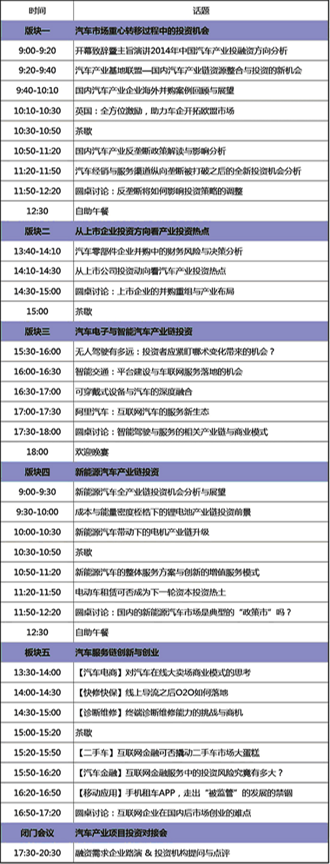 | 2014第五届中国汽车产业投融资策略论坛文章来源:da@hszs01.com | 发布日期:2014-10-29 | 作者: | 点击次数: