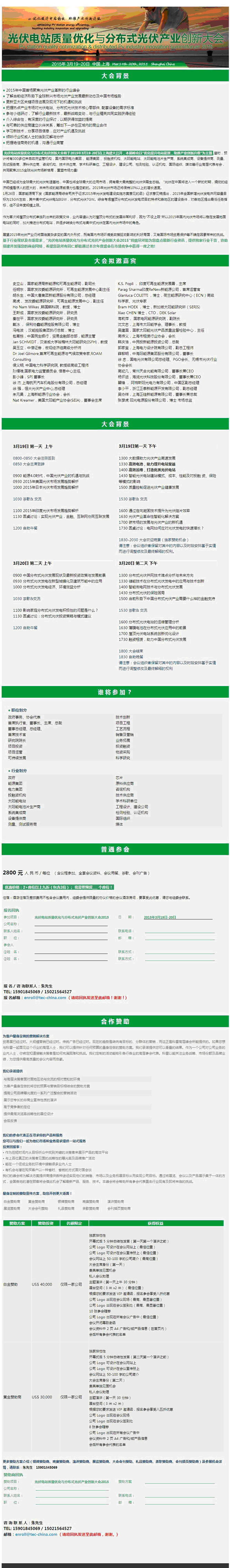 | 光伏电站质量优化与分布式光伏产业创新大会2015文章来源:csyq@wefhe.com | 发布日期:2015-03-10 | 作者: | 点击次数:
