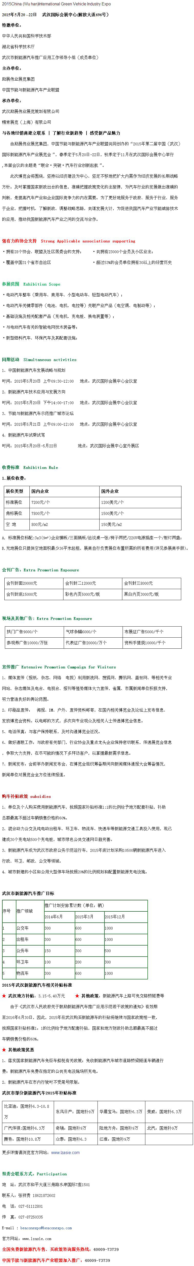 | 第二届武汉国际新能源汽车展文章来源:admin@lzasie.com | 发布日期:2015-03-09 | 作者: | 点击次数: