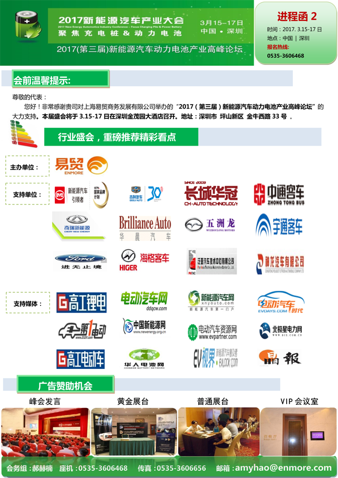| 2017(第三届)新能源汽车动力电池高峰论坛文章来源:amyhao@enmore.com | 发布日期:2016-07-13 | 作者: | 点击次数: