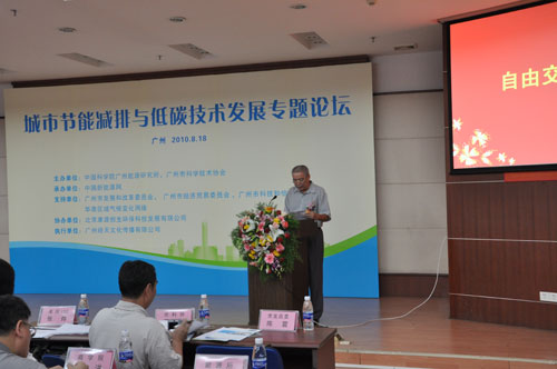中山大学太阳能系统研究所所长沈辉教授演讲 今年是广州的“亚运年”,也是转变经济发展方式、建设国家中心城市的关键之年。如何实现中共中央政治局委员、省委书记汪洋提出的“加快建设国家中心城市,全面提升科学发展实力”的目标,是广州市委、市政府的中心任务。市委市政府提出要把认真抓好节能减排工作,发展低碳经济,促进绿色增长作为突破口,努力把广州建设成为国家创新型城市、华南科技创新中心和全省科技创新策源地。低碳经济主要以低污染、低排放、低能耗“三低”为代表,发展低碳经济是不可逆转的划时代潮流,是一场涉及生产方式、生活方式和价值观念的全球性革命,是落实科学发展观、加快转变经济发展方式和加快建设国家中心城市,实现经济可持续发展的必由之路。最近,广东省也被国家发改委定为低碳试点省。 在这个背景下, 由中国科学院广州能源研究所、广州市科学技术协会主办、中国新能源网承办的“城市节能减排与低碳技术发展专题论坛” 于8月18日在广州能源研究所学术报告厅举办。出席本次论坛的领导专家有:中国科学院广州分院、广东省科学院院长、广东省政府副秘书长陈勇,中国科学院广州能源研究所副所长赵黛青、广州市科学技术协会副巡视员董广珍、广州市发展和改革委员会政策法规处处长朱来山、广州市城乡建设委员会办公室主任谢少波、美国可持续发展社区组织首席代表张烨女士,中山大学太阳能系统研究所所长沈辉、中国国际能源发展促进会副秘书长吴继华。 在上午论坛上,中国科学院广州分院、广东省科学院院长、省政府副秘书长陈勇作题为《低碳时代与科技创新》的演讲,就低碳经济的特征、挑战和机遇和低碳经济时代的新兴产业作了分析,他指出低碳经济的发展不是偶然的,而是历史进程的必然性。美国可持续发展社区组织首席代表张烨介绍美国城市低碳实践及社区可持续发展经验。北京康源创生环保科技发展有限公司代表介绍了城市垃圾处理新技术和案例。 下午,中山大学太阳能系统研究所所长沈辉教授介绍太阳能发电在城市节能减排中的应用和发展,分析了国内外光伏发电发展状况,介绍了国内几个光伏发电项目及广东目前的光伏发电状况。中国科学院广州能源研究所冯自平研究员介绍城市中央空调蓄冰及潜热输送供冷技术。 来自节能减排、新能源行业和政府管理部门的代表共150名参与了论坛。 (中国新能源网陈燕)