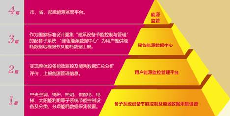 系统架构 网络访问式系统 集能耗数据采集、实时监测、能耗统计评价、能源审计、系统能效控制、能效管理于一体。通过“能源统计管理软件”功能,可方便的与省、市级能源监管平台实现数据报表的实时传输。 强弱电一体化 工程应用实践证明:传统建筑电气设备强弱电分离的设计建设方式,已不能适应国家低碳经济和建筑节能行业的需求。《建筑设备节能控制与管理》系统应用,从节能技术领域推进了智能建筑技术从传统以弱电为主的阶段向强弱一体化方向发展。从能源利用的源头,避免用能企业一方面对既有建筑实施节能改造,另一方面,新建建筑又面临节能改造的尴尬局面。[NextPage] 标准化设计 在项目起步阶段,设计院采用的就是受到法律保护的、有完整技术支撑的节能标准设计,业主对所采用的节能设计方案所具备的功能、投资和效果有充分地了解。对于设计师来说,可以依据《建筑设备节能控制与管理》标准设计图集来指导设计内容和设计深度,满足客户的不同需求,使选用的节能技术能实实在在地降低客户日后的运营成本。 底层设备能效跟踪控制 建筑机电设备的控制不再仅仅局限于功能控制,而是贯穿于整个建筑生命周期运行过程中,如何使机电设备高能效运行?底层设备的硬件模块化、软件组态化设计,各子系统独立节能运行、集中能效监控管理等,全面实现了对楼宇机电设备系统的能量优化调节与运行管理。 集中能效监控管理 设备节能控制与管理系统采用分布式架构、模块化设计,以能源统计管理为手段,以系统设备能效跟踪控制为核心,为用户提供能效管理决策。用户持加密口令可在任一互联网计算机终端上查看本单位所有能耗系统的运行状态,自动生成符合国家要求的各种能耗统计报表。具有能耗数据实时采集、数据传输、能耗统计、对标管理、远程能效监测、用能效率评价、能源数据上报等功能。 能源分类、分项计量、能效统计评价 对建筑设备能耗实现能源消耗按照能源分类、能源用途分项计量,并按照尖、峰、平、谷时段进行统计,展现分析报表;对水、电、油、气、冷(热)消耗进行综合分析,建立与往期数据的同比及环比分析比对,直观深入了解能源具体使用特点、方式和规律,为整体用能效率评价提供科学依据;汇集7万家公共建筑能耗的数据库和建筑能耗基准评价模型,采用统计分析方法及对标分析得出基准用能效率评价。 绿色节能技术 将光电LED照明技术、太阳能热水技术融入系统,进一步降低系统设备能源消耗。采用基于小波变换的有源电力滤波技术,将电网中存在的谐波滤除,从而消除污染,实现绿色节能。 《建筑设备节能控制与管理》系统实现了我国传统建筑节能向多层次、多元化、高科技建筑节能技术的转变,极大地提高了我国建筑节能的技术水平和市场竞争力,其管控一体化整体节能技术突破了现有技术的单一性和长期以来我国建筑设备领域被国外智能化产品垄断的市场格局;为建筑节能产业的兴起与发展发挥着重要的作用,并推动和影响着整个建筑节能产业链的发展。