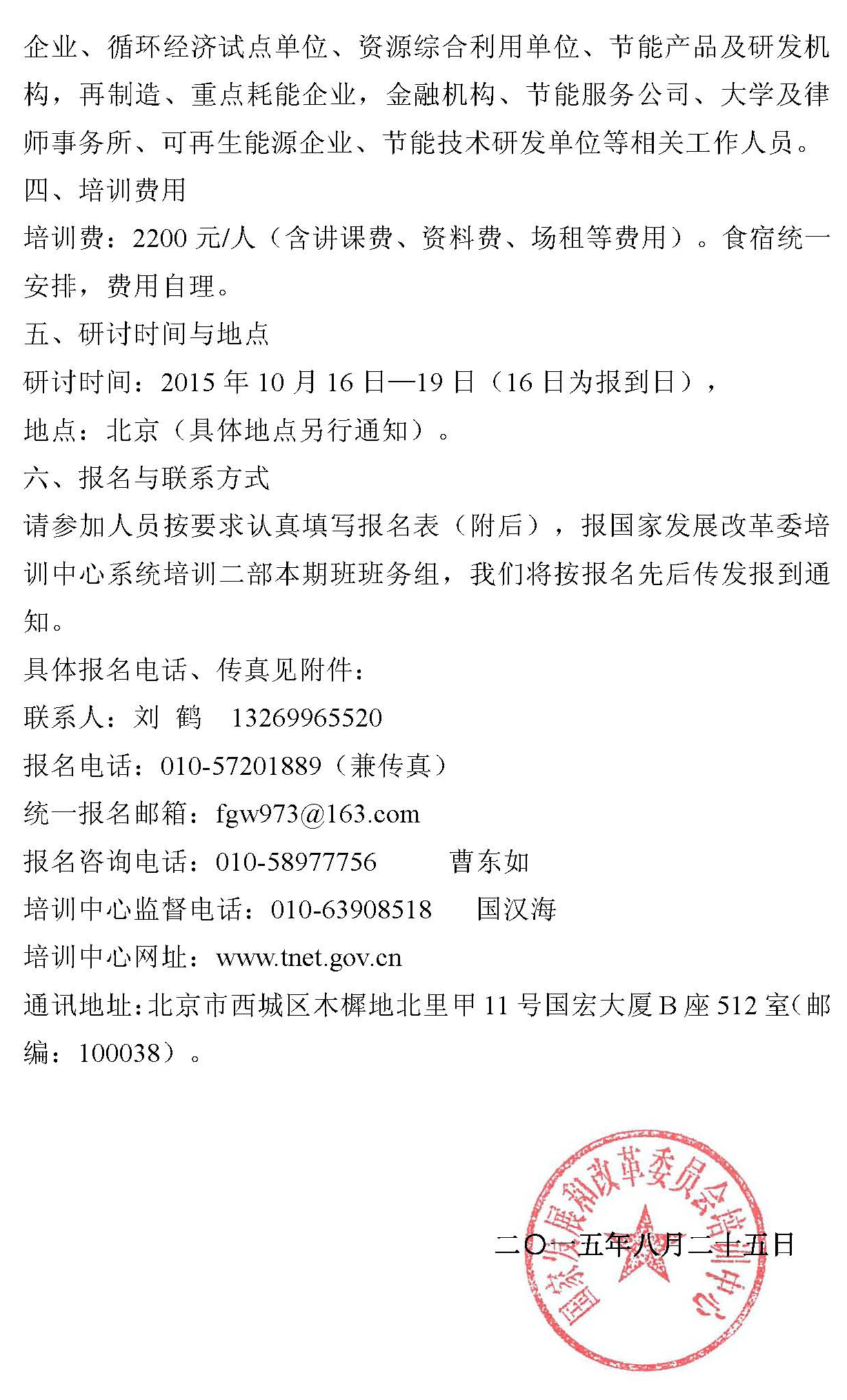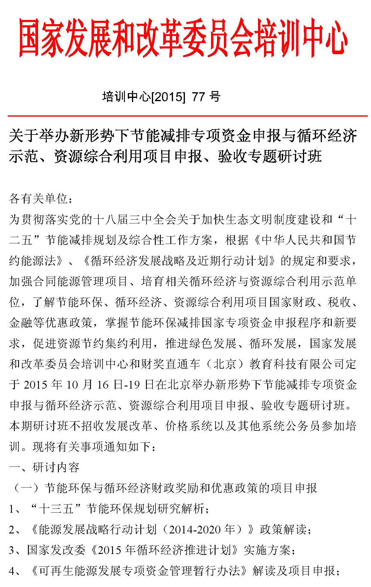 关于举办新形势下节能减排专项资金申报与循环经济示范、资源综合利用项目申报、验收专题研讨班文章来源:jnjp105@163.com | 发布日期:2015-10-19 | 作者: | 点击次数: