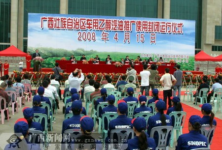 广西车用乙醇汽油推广使用封闭运行仪式现场。徐天保摄 (记者梁凯昌)今天上午,广西车用乙醇汽油推广使用封闭运行仪式在南宁举行,自治区副主席林念修出席仪式并宣布广西车用乙醇汽油封闭运行正式开始。 据介绍,广西封闭推广使用车用乙醇汽油是实现节能减排、建设资源节约型和环境友好型社会的一项重要措施。首先可以为全国发展以非粮为原料生产燃料乙醇积累经验;其次可以缓解广西燃油供应紧张局面,调整广西能源消费结构;第三可以减少尾气排放造成的污染;第四可以有效地促进农业产业化,促进农民增收和发展地方经济。 据了解,封闭运行车用乙醇汽油后,广西将继续认真贯彻落实国家有关生物质能源产业政策,认真履行职责,加强市场监管,确保车用乙醇汽油的质量和供应,巩固发展非粮原料燃料乙醇产业。下一步,广西还将进一步加快推进有关生物质能源产业基地建设和项目各项工作,把广西打造成国家级有关生物质能源产业基地。 此前,自治区人民政府专门颁布了《广西壮族自治区车用乙醇汽油管理暂行办法》,为封闭运行推广乙醇汽油创造了良好的政策环境。按照稳妥推进、先试点后推广的原则,今年3月1日,北海和贵港两市开始销售、使用车用乙醇汽油,3月15日起两市率先封闭运行,总体运行情况良好。在取得推广经验后,4月1日起,全区开始销售、使用车用乙醇汽油。