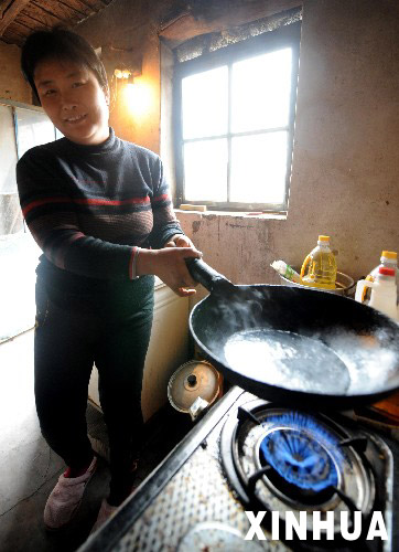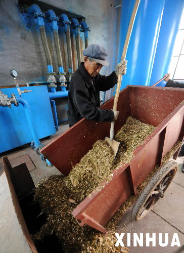 在耿官屯村秸秆沼气站,工作人员在控制室监测沼气站的运作情况(11月11日摄)。 新华社记者巩志宏摄 在耿官屯村秸秆沼气站,工作人员正将秸秆加入发酵池(11月11日摄)。 新华社记者巩志宏摄 耿官屯村村民吴金茹正利用沼气烧水(11月11日摄)。 新华社记者巩志宏摄 目前,河北省青县耿官屯村的秸秆沼气站一期工程投入使用,开始为200多户居民供气。该工程回收村里的秸秆,利用秸秆发酵技术制取沼气,用于村民生活用能,发酵后产生的沼渣再用作果蔬的肥料,形成了清洁能源的循环利用。工程全部竣工后,预计每年可以消耗秸秆2200多吨,日均产生沼气3000多立方米,可为村里3000户以上居民供应沼气。