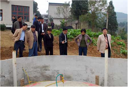 蜂岩中学“沼气进校园”工程的建成投用,彻底解决了校园厕所的防臭和排污问题,既净化了校园环境,提高了全体师生的生活质量,同时还培养了学生保护环境的意识和树立他们探索科学的远大理想。该工程目前正在凤冈多所学校推广实施。(题图:遵义市委常委、副市长何萍在县领导陪同下察看沼气池)