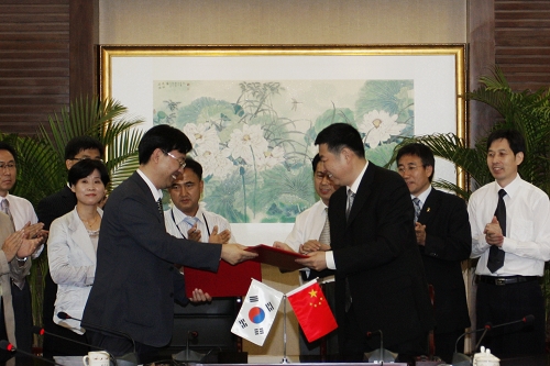 7月3日上午,中韩农业合作委员会第十一次会议在北京举行,农业部国际合作司王鹰司长与韩国农林水产食品部国际合作局金钟珍局长分别率团出席了会议。 双方分别回顾和评价了两国农业合作情况,交流和探讨了两国的农业和农村经济政策,并就WTO多哈回合农业谈判、生物质能源发展等问题交换了意见。会谈后,双方签署了会谈纪要。 7月3日下午,第三届中韩农业部足球友谊比赛在对外经贸大学体育场举行,中方以6:3取得了胜利。