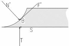 明确了压辊的受力情况,就可以分析物料受力,物料受力情况如图5所示,在磨辊挤压物料的任意一点B,物料受压辊对其施加的力 与 ,分别为 和 的反作用力。在与平模接触的平面,物料受到水平方向上的摩擦力S和铅直方向上的支撑力T。则物料受力的平衡方程为: 纯滚动线所在截面: 滑转滚动区任一截面: 从上述的压辊运动情况和物料受力情况我们可以作出以下分析: (1)从上面三组平衡式的对比可以看出,产生滑转滚动和滑移滚动的时,与纯滚动相比,相当于在竖直方向和水平方向对作用力进行了重新分配。从式④可以看出,在滑移滚动区,物料在水平方向上受力增加,因此水平方向的挤压作用增强。从式⑨可以看出,在滑转滚动区,物料在竖直方向上受力增加,竖直方向的挤压作用增强。两种滑动作用的效果并不是消极的。 (2)由运动分析知,在滑转滚动区,压辊产生超前性滑动,因此对平模径向上单位长度的物料而言,在压辊上的挤压行程增加,这相当于在竖直方向增长了物料的预压缩行程。在滑移滚动区,压辊产生滞后性滑动,对于平模径向上单位长度的物料,在平模上的挤压行程增加,相当于在水平方向上增长了预压缩行程。这就能解释为什么环模制粒机和平模制粒机加工相同原料、相同规格的产品时,平模机的模板厚度远薄于环模厚度:尽管二者都是模板挤压制粒,但平模机的两种滑动作用相当于增加了物料的压缩行程。 (3)从式④、⑤和式⑧、⑨可以看出,两种滑动作用导致了摩擦力的产生,摩擦力F使压辊和物料之间产生了两种剪切作用。滑转滚动区的超前性滑动使磨辊在竖直方向对物料产生了较强的剪切作用,这种剪切作用越靠近模板中心越明显。滑移滚动区的滞后性滑动使磨辊在水平方向对物料产生了较强的剪切作用,这种剪切作用越远离模板中心越明显。 试验时从出料口往里观察,我们发现平模的中间几圈模孔出料快,越是里圈和外圈的模孔,出料越慢。如果卸掉切刀观察,中间几圈的物料被挤出较短的长度就会断裂、坠落。而里圈和外圈的模孔中挤出的物料不易自动断裂和坠落,有许多甚至长至200mm以上才脱离模板。这是因为,由于两种剪切作用的存在,模板内侧和外侧的物料受较大剪切力,物料粒子被充分地揉切、撕裂进而充填、嵌合,所以越是两侧,成型颗粒质地越密实,出料越缓慢。平模机之所以在加工粗纤维含量较多的物料时具有优越的性能,也正是因为这两种较强的剪切作用对物料进行了充分的预处理。 (4)滑移滚动和滑转滚动的存在会导致压辊平模等零件的磨损程度增加,但在设计时可将平模设计成对称结构,能够正反使用用,这将有效降低易损件成本。 4 结语 随着人们环保意识的增强以及国家环保工作力度的增加,社会对清洁的替代能源的需求越来越迫切;今年中央1号文件明确规定“推进以非粮油作物为主要原料的生物质能源研究和开发”;发展生物质颗粒燃料符合国策,顺应民意。性能优异稳定的成型机在生物质燃料颗粒成型过程中扮演着重要的角色。结合太阳能干燥工艺,利用PM60型平模制粒机加工锯末、锯末秸秆混合料等生物质燃料颗粒,成型率在93%以上,吨电耗在55千瓦时以下,小时生产能力在800kg-900kg左右。从试验结果和理论分析来看,平模制粒机是加工生物质颗粒燃料的理想机型。(赵明杰 吴德胜 中国农业机械化科学研究院)