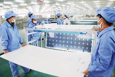 1月26日消息,工信部电子信息司已会同产业政策司、节能与综合利用司,召开多晶硅行业准入标准制定座谈会。这意味着多晶硅行业准入标准进入冲刺阶段,有望在今年上半年出台实施。图为江苏某企业生产的多晶硅太阳能电池组件。