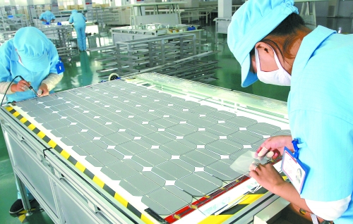 图为江苏海安欧贝黎新能源科技公司太阳能电池组件生产车间一角。 CNS供图 我国在新能源开发方面发展势头迅猛,尤其是太阳能电池行业,目前我国已成为全球主要的太阳能电池生产国。据中国太阳能协会的数据,2007年,我国太阳能电池的产量约为1180兆瓦,世界前16家太阳能电池公司中,中国占6家,是世界上最活跃的新能源投资市场之一。但据业内人士称,与海外市场旺盛需求形成鲜明对比的是,国内应用相对滞后,内需严重不足,“有产业,没市场”问题突出。