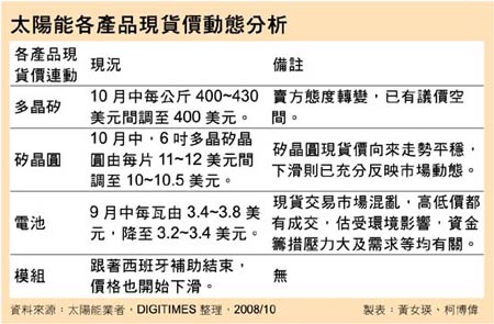 需求降温 太阳能矽晶圆现货价下滑10%文章来源:DIGITIMES | 发布日期:2008-10-23 | 作者:未知 | 点击次数:
