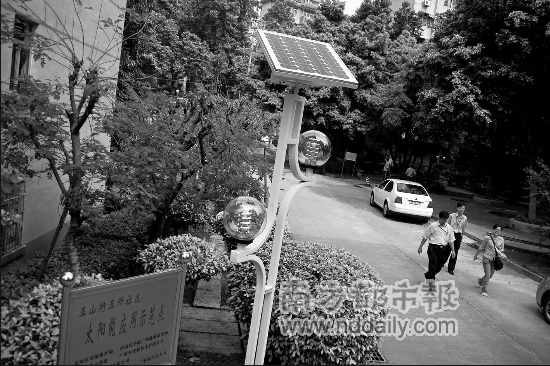 太阳能灭蚊器。 热水器、庭院灯、草坪灯、灭蚊灯,连警示路况的黄闪灯也是太阳能的。今年10月,天河五山街五所小区建成了广州首个太阳能社区。广州日照条件好,背后又有中科院广州能源所这个在业界中被称为太阳能利用“中华之最”的科研机构“撑腰”,缘何太阳能社区“挨”到今日方成? “太阳能源纯属‘老天爷赏饭吃’,取之不尽又免费。要使‘吾使钱’资源变成钱,政府的推动最关键!”省太阳能行业协会会长郑乐鹏一言蔽之。为创办绿色亚运,广州市政府牵头编制了《2008-2020年广州市可再生与新能源规划》。“可以说现在这一话题才开始进入广州市政府视角,但也只处于规划阶段。” 一盏庭院灯可用10多年 无须复杂的地下线路铺设,只要一个再普通不过的水泥基座,再用四颗螺丝钉固定住,一盏太阳能庭院灯就矗立起来,任由风吹雨打可用15-20年,在五所社区里,记者看到了此高科技产物。 “能源取之不竭,不像烧煤、石油一样会产生二次污染,安装又简易,还无须维护,日常使用还能做到人性化开关……”说起太阳能的“好”,技术提供方中科院广州能源所下属企业广州科凌新技术有限公司副总经理林镇荣如数家珍。 “太阳能的‘好’奥妙就全在太阳能电池板上。”据林镇荣介绍,无论是庭院灯,还是草坪灯,抑或是灭蚊灯和黄闪灯,都有个四方形太阳能电池板“高举头上”。“太阳能产品吸收热量全靠它,有了这个,产品就不用拉电线,地下也就无须铺设线路,不用像普通路灯般,一旦线路出现故障就要‘翻土重来’,维修费时又费钱。”他给记者算了一笔账,以家庭太阳能热水器为例,现在市场价一般是3000元左右,一次性投资两三年就可以收回成本。而好点的电源热水器也要一千多元,还要交电费。“一台太阳能热水器一般使用寿命十几年,这十几年产生的整体社会环保效应是不一样的,这是钱买不来的。” 这些太阳能产品,还有一个普通电源产品所不能及的优点———能根据日照时间自动控制开关。 “太阳能产品则不同,其电池板通过感光功能感受日照,冬季早上关灯时间迟晚上开灯时间早,夏季则相反。”住在五所社区的小区物业管理负责人曾先生深有感触。据了解,一盏灯每吸收太阳光一天,就能储备三天的能量供给,最强的是黄闪灯,可以连续供给7个以上阴雨天,“下雨天回家也不用担心天黑黑、被蚊子咬。” 初次尝试热水器水温不稳定 不用定期充气,一拉水阀,热水哗啦啦……陈伯一家是五所社区里最先与太阳能结缘的住户,据他介绍,作为科研机构的家属楼,领导们很有“先见之明”,早在上个世纪90年代,除却部分单元由于建筑原因不能安装外,当时的大部分住户都在楼顶安装了太阳能热水器。 “不过这次尝试不算很成功。”陈伯坦言,太阳能受日照影响,冬夏不同导致水温不是很稳定,夏天冲凉水很热,冬天储备的水温度又不够一家人冲,后来大家又借用电能辅助使用。 陈伯所言的也正是太阳能运用中遇到的技术难题,对此,长期研究太阳能的郑乐鹏认为,任何产品都不能一劳永逸。“像电能热水器漏电、煤气热水器通风不好都会产生危险,而且会产生二次污染,太阳能热水器也有自身的缺点,采取‘多能互补’才是正道。”在五所社区,记者看到所有太阳能产品也正是跟普通电能产品互补使用。“避免下雨时间过长居民回家‘黑蒙蒙’。”天河五山街道办事处副主任杨东说。 家庭安装遭遇城管物管阻挠 据广东省太阳能行业协会数据显示,目前广州太阳能推广,主要产品是太阳能热水器,而用户集中在医院、学校、监狱、酒店等集体用户,产品在普通家庭则推广难,处于全国落后水平。郑乐鹏认为,这除了与广州高层建筑多天面空间不够有关联外,还与广东一些“土规”相关。“以前卖房兴买顶楼送晒台,晒台成了业主私有物业。这样即使有家庭想安装不但要遭遇城管和物管以‘有碍观瞻’为由的‘双阻挠’,还要过得了顶楼业主这一关。” 技术的难题可以用“多能互补”方式来解决,晒台私有化还可望做通业主思想工作,但企业在推广过程中,实实在在遇到的最大难题还是初装费的摊派上。据杨东介绍,五所社区虽然这次仅安装了太阳能庭院灯4盏、草坪灯10盏、黄闪灯和灭蚊灯各一盏,但为此区环保局投入了10万元,社区投入5万元,广州科凌新技术有限公司以最低价出售,才令首个太阳能社区得以促成。他坦言,要在辖区内第二个小区推广,“钱”是难题。 业界现状 企业还停留在最末端的组装上 “原材料成本高,价格降不下来。”中国科学院广州能源所太阳能实验室首席科学家徐刚说,太阳能产品身价高就在于电池板所用的主材料“多晶硅”上,光矿石一吨就要3000多元,我国这种矿石很少,大部分还得从国外进口。 “只有很多人来做这个了,形成竞争了,价格才有望降下来。但首要原因还是政府重视不够啊!”他的观点和郑乐鹏不谋而合。 郑乐鹏指出,在历届广州市政府报告中都没有提及“太阳能”三个字,没有此观念建设更无从谈起。“就连奥林匹克运动中心这么大规模的场馆,一块太阳能电池都不见。”他有点无奈。据悉,为创办绿色亚运,市政