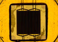图一、Ga0.35In0.65P/Ga0.83In0.17As/Ge多接面太阳能电池,面积5.09mm² 如此高效率的多接面太阳能电池主要是用于聚焦型光伏系统(concentratingphotovoltaic,简称CPV),直接转换太阳的日照作为整个城镇电力的来源。将太阳光聚焦在一个很小(5mm²)的多接面太阳能电池上,在相当于454个太阳的能量下可以达到41.1%的转换效率,甚至在更高能量880个太阳的照射之下仍可量测到40.4%,这个电池可在一个宽的日照强度内使用,并得到超过40%的转换效率。 就如同FhG-ISE之前的电池,新的电池仍采用变形外延的三接面结构,晶格不匹配的Ga0.35In0.65P/Ga0.83In0.17As/Ge(磷化铟镓和砷化铟镓沉积于锗基板)三层结构。与传统的太阳能电池相比,分离的半导体材料彼此没有相同的晶格常数,所以只能利用变形外延来结合这两层,因此很难得到高质量的膜层,另外两层材料之间因不同的晶格常数,结合后容易产生应力,造成插排或是其它的晶格缺陷。 由法兰克博士(FrankDimroth)领军的III-V族磊晶与太阳能电池团队,FhG-ISE克服上述之困难,使缺陷局限于电子非活跃区,而活跃区则保留相对的无缺陷,这是要达到高转换效率不可或缺的因素之一。“这是一个很好的例子,告诉我们如何利用技术上的突破达到控制半导体的结晶缺陷”FraunhoferISE的院长艾克韦伯(EickeR.Weber)博士提到。 多接面太阳能电池中的变形外延可以使用多种III-V族化合物半导体,这个高效率的电池结构,由合适的材料组成,可以将太阳光区分为三个波段分别来吸收。研究员提到,这是一个重要的结论,就是利用一系列材料连接形成的太阳能电池,其组件的电流将会被最小电流的那部份给局限,而利用变形外延的电池Ga0.35In0.65P/Ga0.83In0.17As/Ge,可以使电流匹配,完整的输出(多接面电池结构的三个次电池皆产生相近的电流),这也是此电池可以达到高转换效率的重要原因之一。