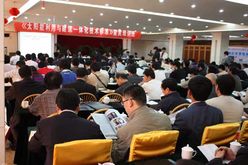 4月21日——4月22日,应合肥建设委员邀请,我司参加了由合肥市房地产市场监管办公室主办、合肥市房地产业协会协办、合肥城建开发公司承办,为期两天的《太阳能利用与建筑一体化技术标准》宣贯培训班。中国可再生能源学会、热利用委员会主任郑郑瑞澄、安徽省建筑设计研究院副院长姚茂举、光伏系统教育部工程研究中心主任张晓安、建设部住宅产业化促进中心副总工孙克放等领导出席了此次会议。 近年来,随着国家节能减排号召的提倡,我国经济结构和增长方式的调整转变,国内各省厅都已意识到加强太阳能利用系统在建筑上应用的重要性。安徽自今年三月一日起,就已开始全面实施省建设厅出台十二层以下建筑强制性安装太阳能的政策举措,并要求将太阳能与建筑节能工作相结合,推进建筑太阳能与建筑一体化进程。此次培训会旨在促进和规范合肥市太阳能技术在建筑领域的推广应用,建设资源节约型、环境友好型社会。 培训会上群英荟萃,大会邀请了国家建设部有关专家前来授课指导,来自合肥各大房产公司的二百余名学员代表参加了此次培训。会上,行业权威专家和协会领导对太阳能建筑一体化现状以及技术标准进行了分析解读。应大会和学员代表的强烈要求,华扬工程部房产配套处韩迎春工程师与在座的学员进行了太阳能热水器系统在住宅中的应用技术交流,赢得了在座专家和学员的好评与赞赏,并有众多地产公司主动表示要与华扬进行房产配套合作,实现太阳能与建筑一体化的结合与应用。 华扬作为国内太阳能建筑一体化工程的领头推行者,有着丰富的安装经验和专业化的技术优势,无论在产品科研应用、人才队伍建设、工程项目进展等方面均取得优异的成绩,并在国内承接了多样化的大型工程项目,如:学校、医院、企业、住宅小区等,多次受到各地政府领导的嘉许和社会各界的广泛好评。此次华扬与合肥房产部门的携手合作,为促进当地太阳能建筑一体化推广贡献起到了积极的促进作用。据悉,类似此次太阳能建筑会议华扬还将在日后多次参与。