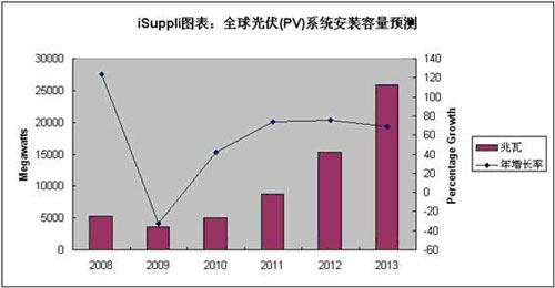 许多太阳能业内人士和投资者相信,当实现gridparity(太阳发电成本下降至与传统发电成本相当)的时候,太阳能发电市场就将迎来拐点,之后其发展将势不可挡。 但iSuppli公司认为,即使真的有这么一天,也不太可能给太阳能系统安装带来急剧增长。这是因为屋顶光伏系统需要高昂的前期投入成本,而且需要较长时间才实现投资回报。实际上,随着太阳能产业进入比较成熟的阶段,当全球各地区达到gridparity的时候,该产业的增长将会比较温和。 继2009年增长速度放缓之后,按安装系统的兆瓦数衡量,预计2010-2013年光伏系统安装的复合年增长率将达到72.4%。2010年到2020年,预计届时将有许多在太阳能安装方面走在前列的国家达到gridparity,到时复合年增长率将下降到20%。 Gridparity的定义 对于gridparity有许多不同的定义,iSuppli公司的定义是:当屋顶太阳能系统在五年内实现100%的投资回报的时候。而且,它所带来的债务——即太阳能系统投资的负现金流,一定不能超过总体安装成本的25%。 “iSuppli公司预计,gridparity不会导致用户对于光伏系统的需求骤增,”iSuppli公司高级总监及首席分析师HenningWicht博士指出,“该市场可能平稳过渡,当gridparity到来的时候,需求会以渐进的方式变化。这是因为用户仍然需要事先投资,并在较长时间内等待获得回报。这在很大程度上与人们的心理有关。太阳能系统预计会工作30年,投资这种系统需要有坚定的决心。” 因此,预计全球光伏安装将平稳增长,即使当某些国家达到gridparity时也会如此。决定光伏安装增长情况的主要因素,将是供需平衡,该因素将主导价格走势。 太阳能市场将摆脱“西班牙流感” 预计2009年全球光伏安装容量将比2008年减少32.3%,从5235兆瓦下降到3546兆瓦。但是,这种下降是单一因素的影响结果:预计西班牙光伏安装将急剧减少。 2008年西班牙占全球光伏安装容量的50%。此前西班牙光伏安装大增是人为因素的结果,因为该国的上网电价补贴(feed-in-tariff)调降的日期即将来临,而且光伏系统补贴上限即将提高到了500兆瓦。这将导致2009年西班牙光伏市场增长速度明显下降。 但是,2010年光伏安装容量将会反弹,届时增长率将回升到42.5%,2012和2013年将分别增长73.6%和68.6%。 [NextPage] 下图所示为iSuppli公司对于全球光伏系统安装容量的预测。