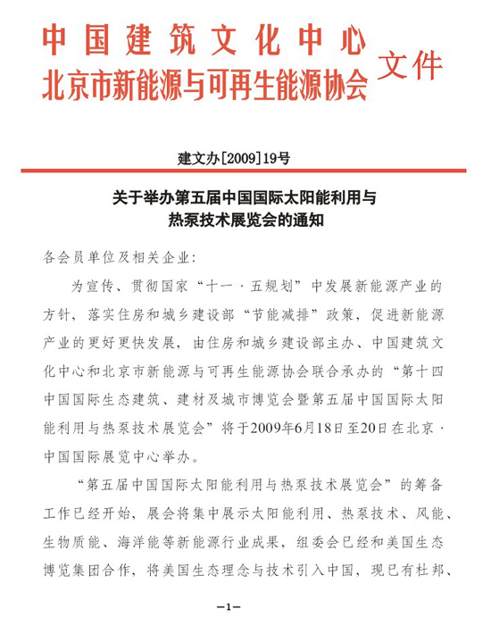 关于举办第五届中国国际太阳能利用与热泵技术展览会的通知文章来源:中国新能源网 | 发布日期:2009-06-12 | 作者:未知 | 点击次数: