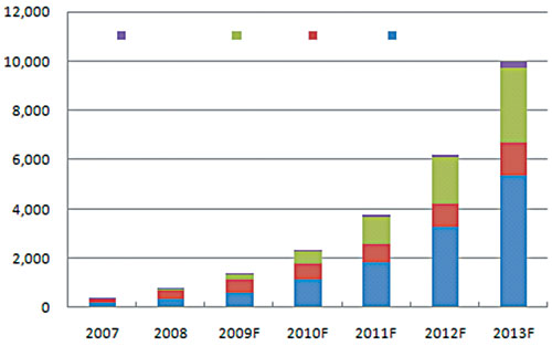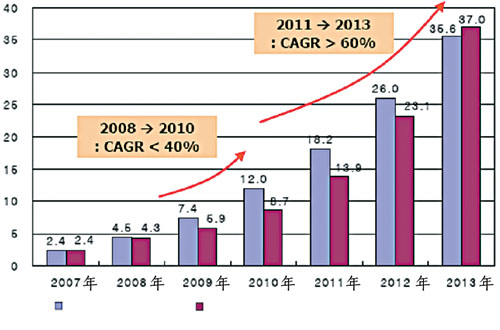 太阳能光伏发电在不远的将来不仅要替代部分常规能源,而且将成为世界能源供应的主体,将给能源发展带来革命性的变化。根据欧洲联合委员会研究中心(JRC)的预测,到21世纪末,可再生能源在能源结构中将占到80%以上,其中太阳能发电占到60%以上,充分显示出其重要的战略地位。 国内外市场长期均会大幅增长 受国际金融危机的影响,各国政府补贴力度下调,信贷政策收缩,预计未来两年全球新增光伏装机容量增速将有所减缓。根据Display bank公司的最新预测,受世界经济下滑、需求减少、投资放缓的影响,未来两年全球光伏市场容量和增长速度均比先前预测的要低,但光伏产业作为未来能源产业发展的主要趋势并未改变。2011年以后光伏市场增长幅度会加快,年复合增长率将超过60%,预计2013年市场需求量将达到37GW。其中德国、西班牙、美国、意大利和日本的合计份额仍将保持在85%以上,仍是主要需求地区。 根据美国国家光伏中心的预测,至2020年全球光伏总装机量将达70GW,表明世界光伏产业发展有着广阔的市场空间。2020年光伏发电成本可以降低到每千瓦时10美分以下,在几乎整个电力市场上都具有竞争力。随着太阳能电池成本的降低,MW级光伏电站将不断出现。 2030年以后光伏发电的成本会继续降低,电池的转换效率将进一步提高,光伏系统组件将发展成建筑物通用的构件,可以实现大规模的标准化应用,几乎所有新建筑都将安装光伏阵列。欧盟希望在2030年安装的光伏发电装置增加到200GW左右,全球可能会达到1000GW。 据统计显示,2002年以前国内光伏发电装机容量一直徘徊在5MW左右。2002年到2004年,国内光伏市场大幅攀升。2008年我国太阳能电池以2050MW的产量跃居全球第一,但装机容量仅为20MW,我国制造的太阳能电池几乎全部出口。估计2008年中国累计安装量达到115MW。中国光伏应用仍然以独立系统为主,并网光伏发电应用比例还很小。 我国是能源生产和消费大国,随着经济持续快速发展和工业化进程的加快,我国的电力需求也快速增长。据中国电力科学院预测,2010年我国电力供应缺口为52.9GW,占需求的7.7%;2020年为91GW,占8.2%。可见国内电力市场日益增长的需求为光伏产业的应用发展提供了有力支撑。国家发改委提出了2010年光伏组件及系统累计安装450MW的目标。预计2008-2010年太阳能光伏装机容量的年均复合增长率将达到80.86%。到2020年,我国光伏累计装机容量将达到1.8GW。 TFS发展趋势与投资特点 TFS(薄膜太阳能电池)成本较低,转换率日益提高,性价比适中,有着广阔的应用空间。从2008年到2013年,薄膜太阳能电池市场平均年增长率高达67%,到2013年产量达到10GW,约占整体太阳能电池市场的20%以上,其中非晶硅薄膜太阳能电池仍为主流产品。 2008年8月,富士经济公布的太阳能电池全球市场调查结果显示,薄膜硅太阳能电池2007年市场规模为578亿日元。预计2012年将提高到2007年的9.7倍,达到5595亿日元。由于薄膜太阳能电池的原料价格低、制造工序少,因此今后有望大幅降低成本。 全球硅基薄膜太阳能电池生产厂家主要有夏普、美国联合太阳能、Bangkok Solar、日本Kaneka Hybrid、Sunfilm、Malibu、宇通光能等。2008年全球硅基薄膜太阳能电池产量预计为585MW,2009年将增长至1104MW,增长率为88.7%。 业内的分析机构和众多专家都指出,薄膜太阳能电池在未来5-10年内将以50%左右的年平均增长率增长,在快速增长的整体太阳能电池产业中独占鳌头。但从事硅薄膜太阳能电池产业也必须洞察其风险。除了在市场、成本、技术方面的风险外,在资金需求、供应链组织、生产动力供应和技术人才方面都有较高的门槛。 在资金需求方面,一条40MW-50MW的非晶硅薄膜电池生产设施的总投资在10亿元左右,而公认的经济规模应在300MW-500MW。一座年产能为300MW的厂房,占地面积为20万平方米,总投资约为35亿元。 在供应链组织方面,产品生产所需的高透光率的超白玻璃(或镀有透明导电膜的TCO玻璃)、高纯硅烷、PVB膜等,都只有有限的供应来源。如何争取稳定且价格便宜的材料来源,也是投资人面临的主要难题。 [NextPage] 技术人才一直是薄膜太阳能电池发展的瓶颈之一。除电池本身的结构设计、分析检测需要大量专业人员外,化学气相沉积(CVD)、真空溅射、激光刻线等特殊工艺,以及包括多种特殊气体、高纯水、净化空调系统等的厂务支持系统,都需要大量有专业知识背景和实际操作经验的员工。而由于目前大量的项目正在兴建,人才竞争也变得空前激烈。 总之,每个欲投身其中的企业都应该全面分析自己所面临的机会和挑战,理性客观地做出自己的投资决策。 2007~2013年全球光伏市场预测 单位:GW 资料来源:Displaybank 2009.Q1 国内光伏装机容量统计与预测 数据来源:CEEDI整理 2007-2013年全球薄膜太阳能电池市场预测 单位:MW 数据来源:Displaybank 2008.12
