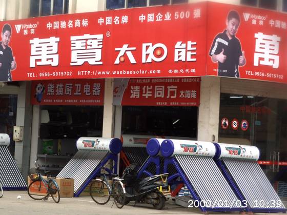 第一行程:海宁-湖州-宣城-芜湖-巢湖-合肥-蚌埠-阜阳 安徽是我们此行的第一行程,经浙江湖州进入安徽宣城由此北上。 安徽省北接中原,南近江南,属太阳能辐射量的四类地区,太阳能资源丰富,年太阳能利用达250天以上,太阳能的可利用率比较高。 安徽太阳能产业的发展,在当地政府的引导下,近几年发展较快,从上个世纪80年代末开始,太阳能生产和销售开始起步,到现在已拥有近百家太阳能热水器生产企业,如美菱太阳能、荣事达太阳能、扬子太阳能、贝斯特太阳能、红牌等。同时拥有十几个太阳能大卖场近300多家太阳能热水器经销商。合肥市的安徽大市场,蚌埠市的光彩大市场,安庆市的光彩大市场,六安市的红旗建材大市场、安徽桐城市的兴尔旺大市场等。尤其是以合肥市安徽大市场、蚌埠市光彩大市场为核心的市场所形成的强大销售网络,已辐射湖北、湖南、河南、安徽、江西、山西中部六省。 据有关资料,近几年,安徽市场每年的太阳能单机销售在30万台左右,销售额约3亿元。安徽严格的市场准入门槛,为安徽太阳能市场的规范健康发展提供了保障。[NextPage]