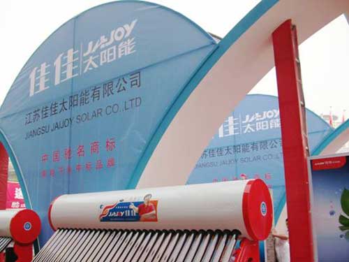 新客户们对佳佳更是表现出了前所未有的兴趣。对一直想换个牌子操作的赵经理来说,他已经在佳佳展位前看了很久。他说:以前是做一线品牌的,可是太阳能热水器家电下乡之后,厂家给的利润实在太低了,自己卖了十几年的太阳能,放弃了太可惜,所以想换个中等价位的品牌做。佳佳又是中标企业又是中国驰名商标,这让他的兴趣更加浓厚,在详细地了解了佳佳的产品质量和支持政策之后,他准备出手试试! 三天的展会,持续火爆的场面经常出现,公司准备了大量的礼品和资料,让前来的经销商近距离地感受到佳佳公司的关怀和支持,更让他们感受到公司的亲和力。本次展会收获颇丰,借助常州展会这个平台,不少的经销商认识了佳佳,了解了佳佳的产品和实力。这正如江苏佳佳太阳能有限公司总经理徐维键所说的,虽然第一次参加秋交会,就是要在秋交会上展示自己!我们要很好地利用秋交会这个行业盛会的平台,展示企业的实力,展现佳佳太阳能的品牌形象,让来自全国各地和国外的客商了解佳佳太阳能,知道佳佳太阳能的特色、记住佳佳太阳能的产品与众不同,使佳佳有机太阳能,健康环保的理念深入人心!我们的目的就达到了。而这一切正如徐总所预见的那样。 佳佳从95年成立至今,走过了14个年头,历经了14年的风风雨雨。14岁正值一个人的少年时代,佳佳——一个意气风发、朝气蓬勃的少年,正大踏步地走在致力于国家节能环保之路上。也许他的步伐还不太稳健,但是,有国家的政策支持和佳佳优秀团队的不懈努力,佳佳一定会发展地更快、更好。(完) ————江苏佳佳太阳能有限公司企划部 夏王蓬
