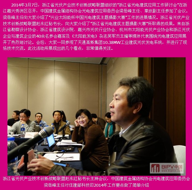 浙江省光电建筑应用工作研讨会在浙江嘉兴召开文章来源: | 发布日期:2014-03-12 | 作者: | 点击次数: