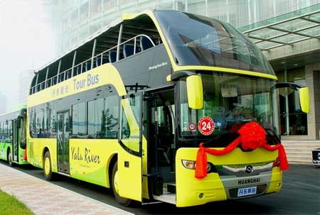 黄海新款双层观光车 随着能源的紧张局面和石油价格的上涨,发展可持续交通、保障能源安全与保护环境已成为国际社会关注的焦点。在此背景之下,发展新能源汽车已经被中国政府确定为实现能源和环境目标的重要途径和提升我国汽车产业竞争力的突破点。对于城市公交客车行业来说,在这样一个由能源驱动的产业变革下,为缓解国际能源危机与环境污染的加剧,客车行业积极响应,为节能环保与产业优化营造出一个良好的应用环境和社会氛围。其中,作为多年来公交客车行业领军企业的黄海客车,顺应行业发展趋势,几年前就着手进行新能源客车的研发。筹建新能源客车专题项目组,不断加大节能环保技术研发投入,将开发低能耗、高环保的公交客车作为了今后发展的重要方向。 本着对用户负责和高度的社会责任感,黄海客车在产品没有完全成熟之前,并不急于推向市场,而是对新能源客车进行了广泛的调研和系统的研究及试验,以确保每个推向市场的产品得到用户和社会的广泛认可。此次在鸭绿江国际旅游节首日,黄海客车成功推出了具有混合动力的新能源客车。说明黄海客车在新能源客车领域已取得了新的突破。 黄海客车相关人士表示,此次会上仅展示了黄海的混合动力客车,实际上,黄海客车全新研发的新能源客车共包括三款车型:第一款是与国外某公司合作的并联式电动混合动力车;第二款车型,是黄海客车客车与国内某研究院合作研发的12米混联式混合动力低入口公交车,以上两款车型均为混合动力系统,能带来更好的燃油经济性,更环保,更安静的操作,性价比十分出色,适合我国的公交市场目前的环境;第三款车型是在整合全球资源基础上,与国内外多家科研机构合作研发纯电动客车,参与全球电动客车市场体系,期望在不久的将来会在全球发布。 据了解,混合动力车拥有发动机(内燃机,大客车为柴油机)及电动机两种驱动系统(柴电混合)。是介于内燃机汽车和电动汽车之间的一种车型,是一种内燃机汽车向电动车过渡的一种产品。大型混合动力客车可在原有车型的基础上,整车结构不变,进行动力系统的更新与升级。升级后的混合动力车相较原车型,排放更低;油耗更低;平顺性好,噪声降低,一般装有两个以上动力源(内燃机车发电机、蓄电池),可节能20%—30%。黄海客车新能源客车产品的成功研发,代表着黄海客车在该领域已经达到国家领先水平。黄海客车相关人士表示,黄海客车响应国家号召,大力支持绿色环保,在推出新能源客车之后,将基于黄海客车“公交霸主”的领军地位,进一步打造领先的节能环保产品,将节能环保产品打造成多需求、多应用的系列产品,促进我国新能源客车的更新换代,为中国的节能环保事业贡献出更大的力量。
