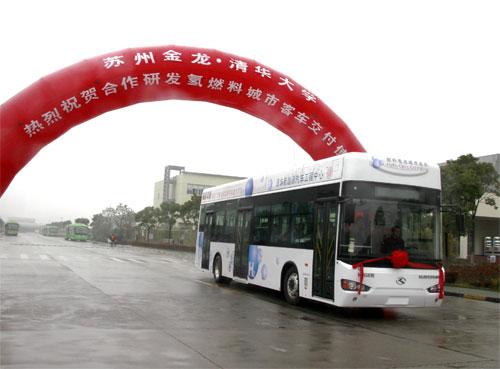 日前,由苏州金龙和清华大学联合研制的新一代氢燃料电池城市客车在苏州下线,此举标志着国家 ‘863计划十一五攻关项目:节能与新能源汽车’——氢燃料城市客车研发项目取得新突破。这也是海格客车继2006年初推出氢燃料城市客车后,推出的新一代升级产品。