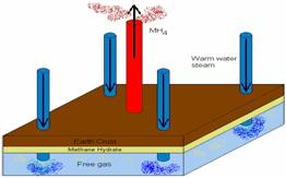 近年来,在用加热法开采稠油时,为了提高加热效率,采用井下装置加热技术,井下电磁加热方法就是其中之一,实践证明电磁加热法是一种比常规开采技术更为有效的方法。这种方法就是在垂直(或水平)井中沿井的延伸方向在紧邻天然气水合物带的上下层内(或天然气水合物层内)放入不同的电极,再通以交变电流直接对储层进行加热。电磁热还很好地降低了流体的粘度,促进了气体的流动。Islam进行的模拟计算结果表明,利用该方法分解水合物是可行的。[NextPage] 2.降压法 通过降低压力而使天然气水合物稳定的相平衡曲线移动,从而达到促使水合物分解的目的。一般是在水合物层之下的游离气聚集层中“降低”天然气压力或形成一个天然气空腔(可由热激发或化学试剂作用人为形成),使与天然气接触的水合物变得不稳定并且分解为天然气和水。开采水合物层之下的游离气是降低储层压力的一种有效方法,另外通过调节天然气的提取速度可以达到控制储层压力的目的,进而达到控制水合物分解的效果。减压法最大的特点是不需要昂贵的连续激发,因而其可能成为今后大规模开采天然气水合物的有效方法之一。但是,单使用减压法开采天然气是很慢的,是一种弱化被动式开采。 研究者认为,当水合物层下面存在自由气藏时,降压开采是最有效的方法。前苏联麦索雅哈气田的开采实践即证明了这一点。 3.添加化学剂法 某些化学剂,如盐水、甲醇、乙醇、乙二醇、丙三醇等可以改变水合物形成的相平衡条件,降低水合物稳定的温度。当将上述化学剂从井孔泵入后,就会引起天然气水合物的分解。添加化学剂法较加热法作用缓慢,但确有降低初始能源输入的优点,其最大缺点是费用太高。 4.其他方法 近期有学者提出用CO2置换开采,用压力将相平衡压力较低,更容易形成水合物的CO2通入天然气水合物储层,通过形成二氧化碳水合物放出的热量来分解天然气水合物,同时可以用来处理工业排放的CO2。 也有人提出直接在井底放一个高温催化炉,把甲烷催化成一氧化碳和氢气,利用放出的热量来分解水合物。 除了以上常见的开发方法,一种新的天然气水合物开发方法是在深海使天然气水合物颗粒化,或将天然气水合物装入一种可膨胀的软式气袋(其内部保持天然气水合物稳定所需要的温度压力条件)中,再用潜水艇把天然气水合物拖到大陆架附近的浅水地区,在那里,天然气水合物能够缓慢地分解,产生燃料和水。最近,日本学者用试验证实了将空气中的CO2分离与天然气水合物开发相结合的可能性。 从方法的使用来看,单单采用某一种方法来开采天然气水合物是不经济的,只有结合不同方法的优点才能达到对水合物的有效开采。例如将降压法和热开采技术结合使用,即先用热激发法分解天然气水合物,后用降压法提取游离气体(如图4),这样取得的效果可能会更好一些。