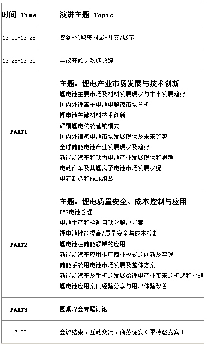 大会简介 本次会议将以锂电池关键材料的发展现状及未来趋势的分析为切入点,讨论锂电池性能提高和成本降低的可行性及对新能源汽车和手机产业的影响。为帮助企业更好认识锂电池产业链技术现状与发展趋势,会议拟邀锂电行业资深专家、行业协会、科研机构研究员/分析师、大学教授、企业精英与一线大佬圆桌论剑,指点行业门道,透过高端演讲对话及互动交流形式,从市场及技术应用不同层面探讨产业发展动态与趋势。欢迎各厂商参加!了解更多会议信息>> 会议亮点: 精选的锂电技术研讨会,将针对业界热点和难点问题展开深入研讨,系统全面地交流锂电技术路线的最新思维与进展,推动技术快速提升。 展望锂电技术未来五年,由OFweek行业研究中心发布《2015-2019年中国锂电池关键材料行业市场研究及预测分析报告》,以独特视角,预测全球产业发展。 邀请权威行业机构专家及政府部门领导对锂电未来发展走势和国家最新政策进行解读; 直接接触主流媒体,有效拓展市场,提升品牌知名度。 锂电圆桌峰会,富有时效性与前瞻性的话题筹划,汇集了行业国际知名企业、资深专家、政要等产业高层,强强联手,行业大佬的巅峰对决,一场真正的视听盛宴!