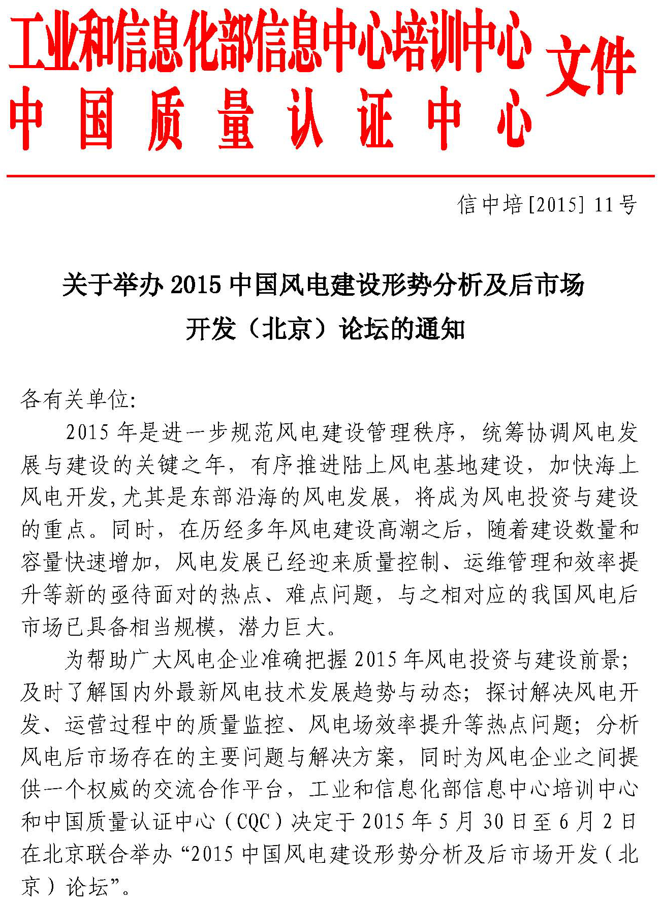 关于举办2015 中国风电建设形势分析及后市场开发(北京)论坛的通知文章来源:www.510080764@qq.com | 发布日期:2015-05-25 | 作者: | 点击次数: