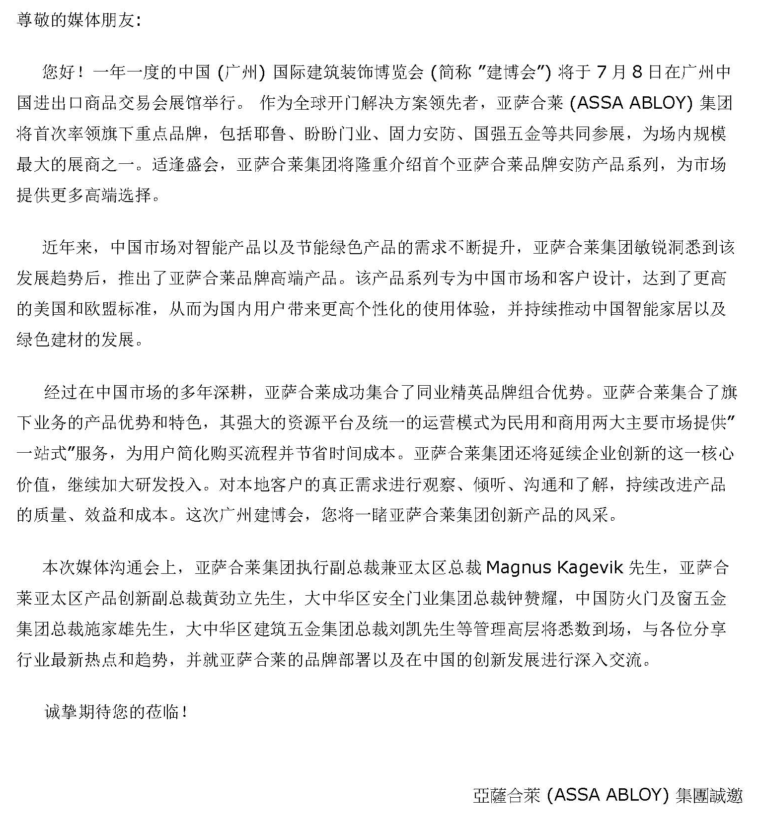 亚萨合莱集团广州建博会媒体沟通会文章来源:abby.guo@e21mm.com | 发布日期:2015-06-10 | 作者: | 点击次数: