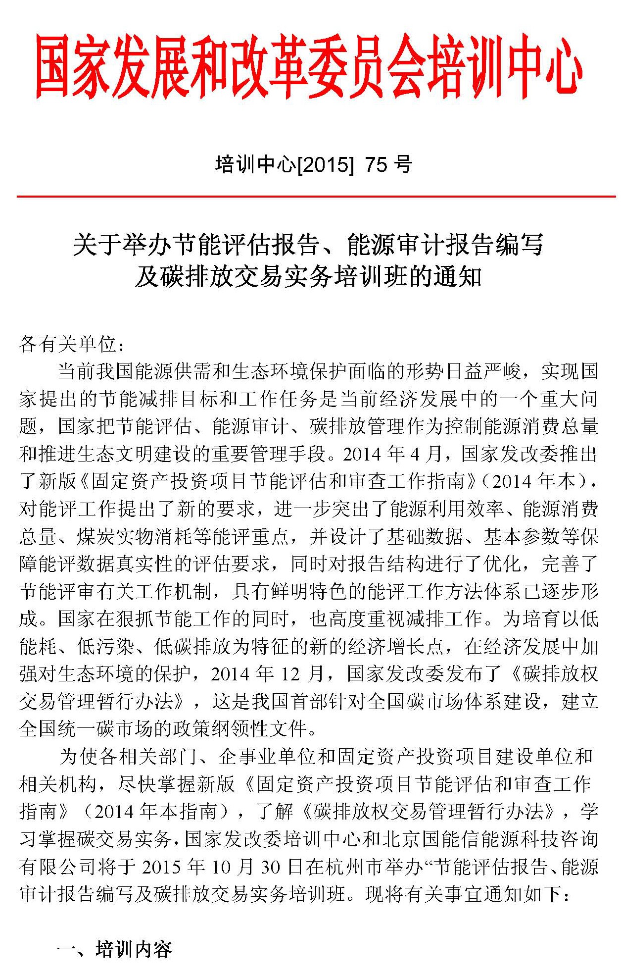 关于举办节能评估报告、能源审计报告编写及碳排放交易实务培训班的通知文章来源:jnjp105@163.com | 发布日期:2015-10-19 | 作者: | 点击次数: