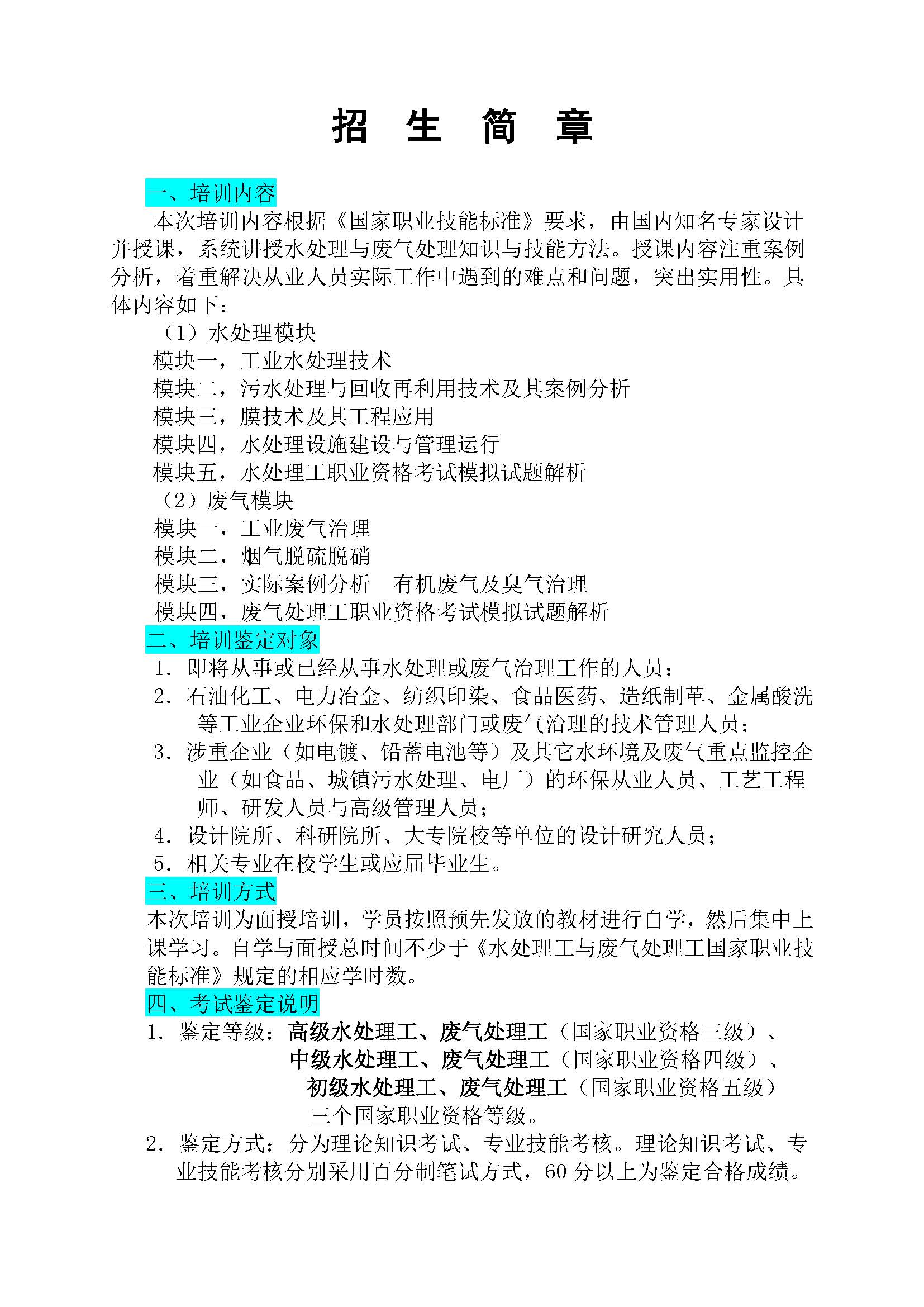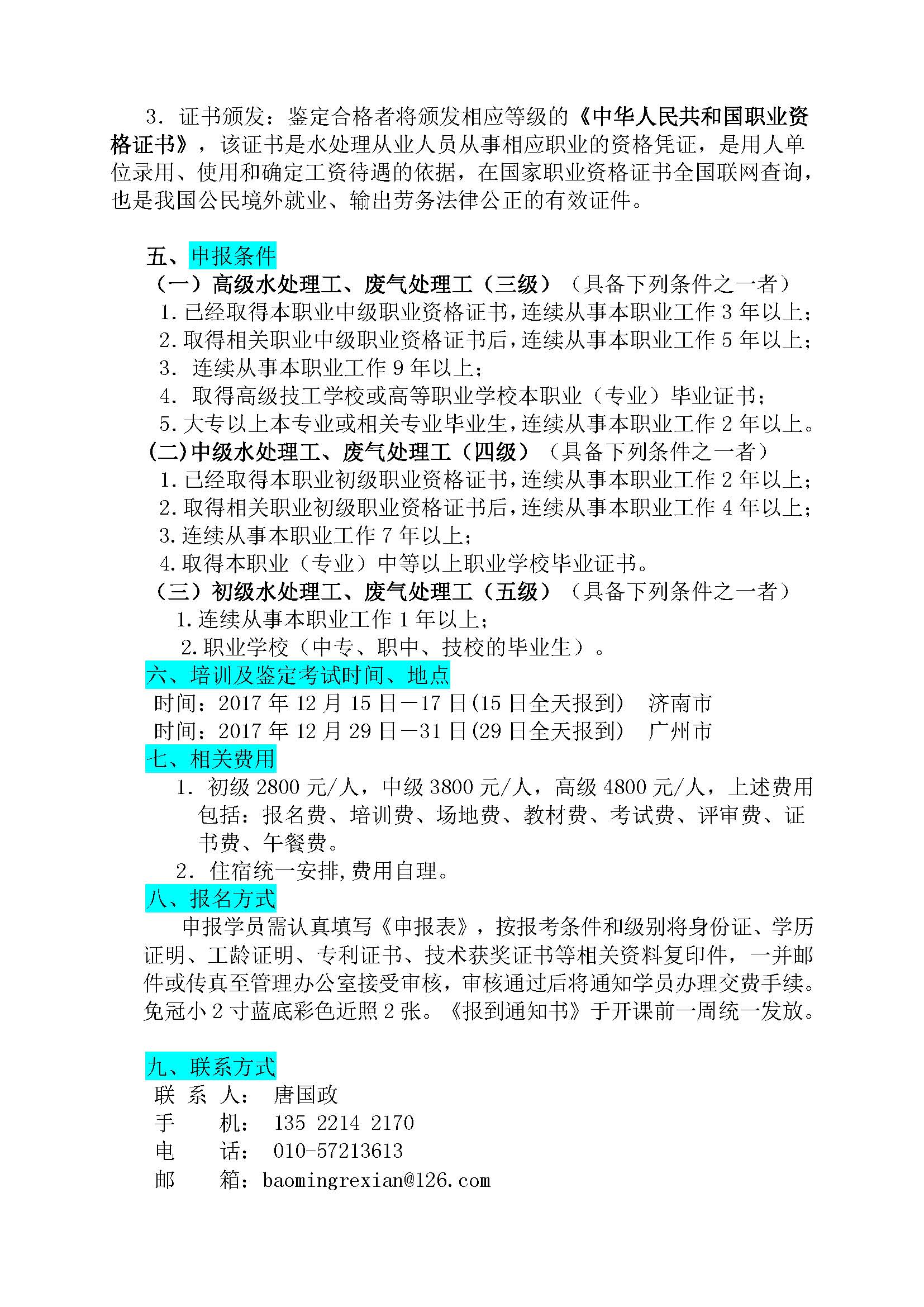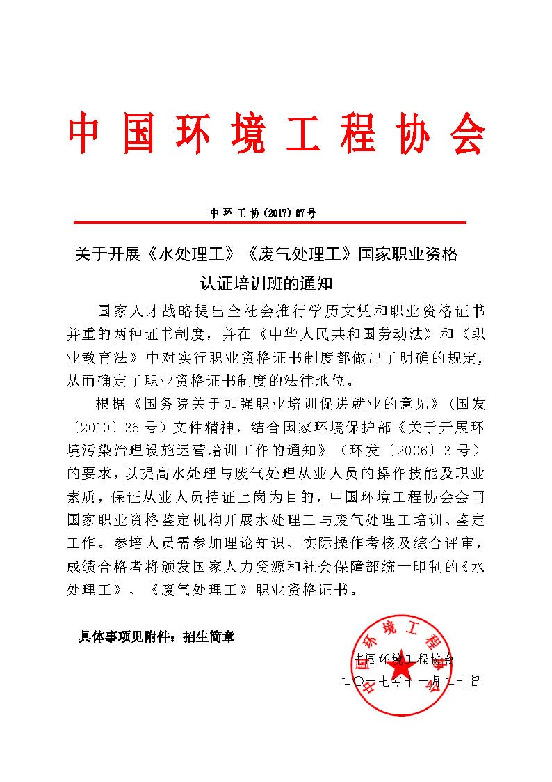 关于开展《水处理工》《废气处理工》国家职业资格认证培训班的通知文章来源:tommy@zun.com | 发布日期:2017-12-07 | 作者: | 点击次数: